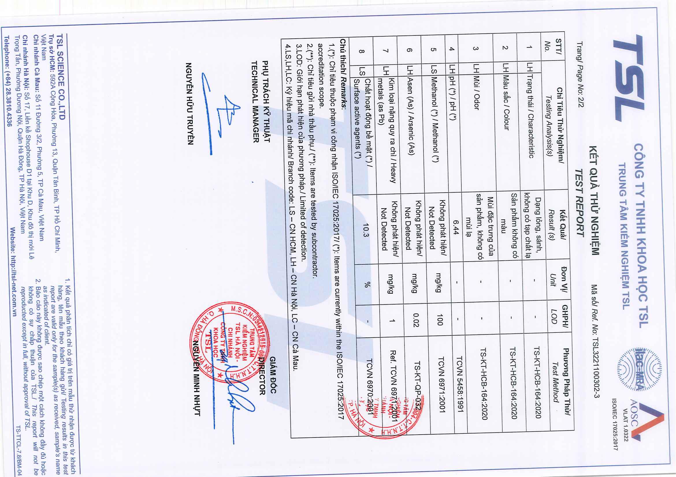 Sản phẩm nước giặt máy, giặt tay có chỉ tiêu và mức chất lượng theo yêu cầu ở bảng dưới đây: