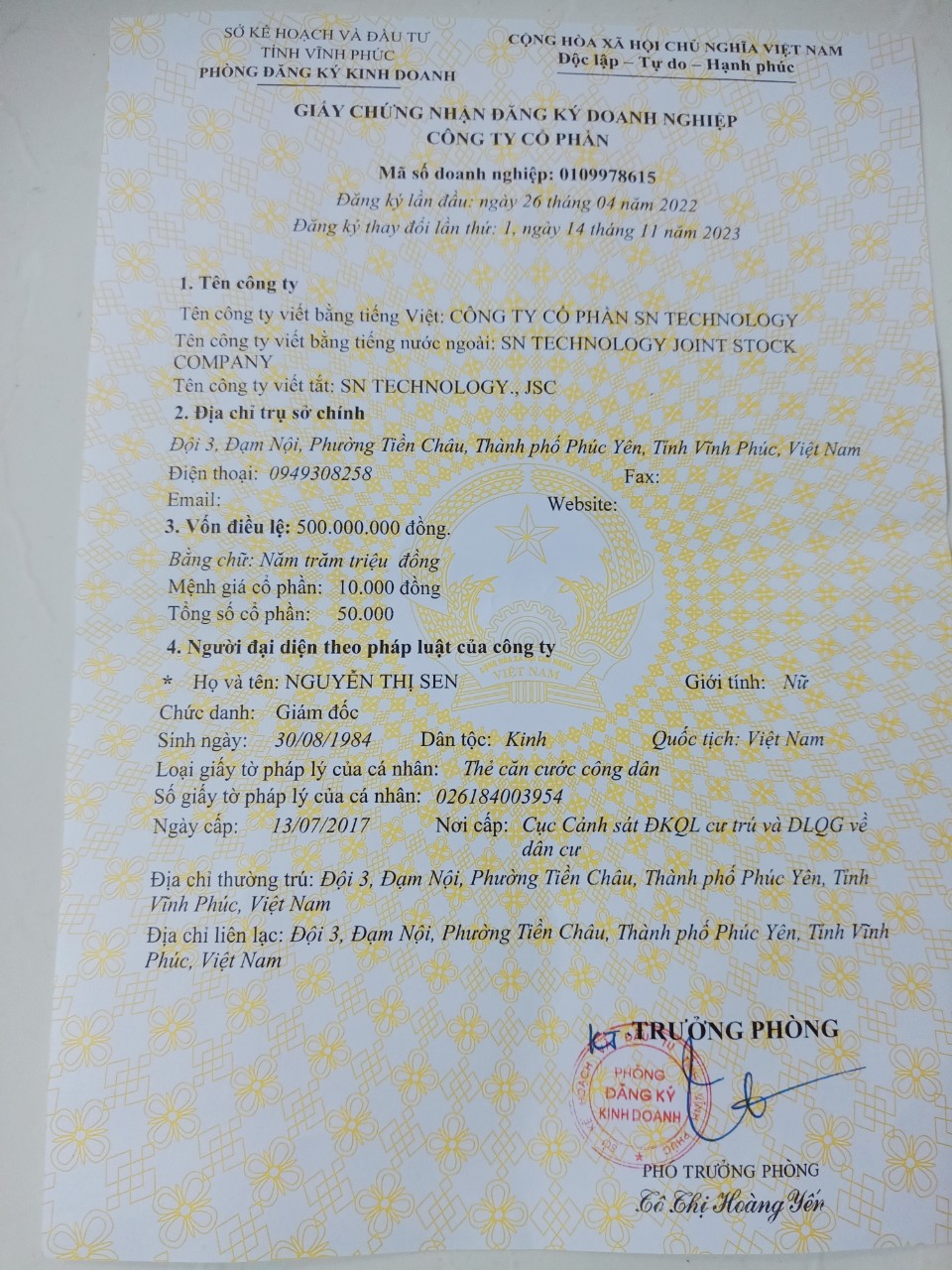 NPP: CÔNG TY CỔ PHẦN SN TECHN0LOGY